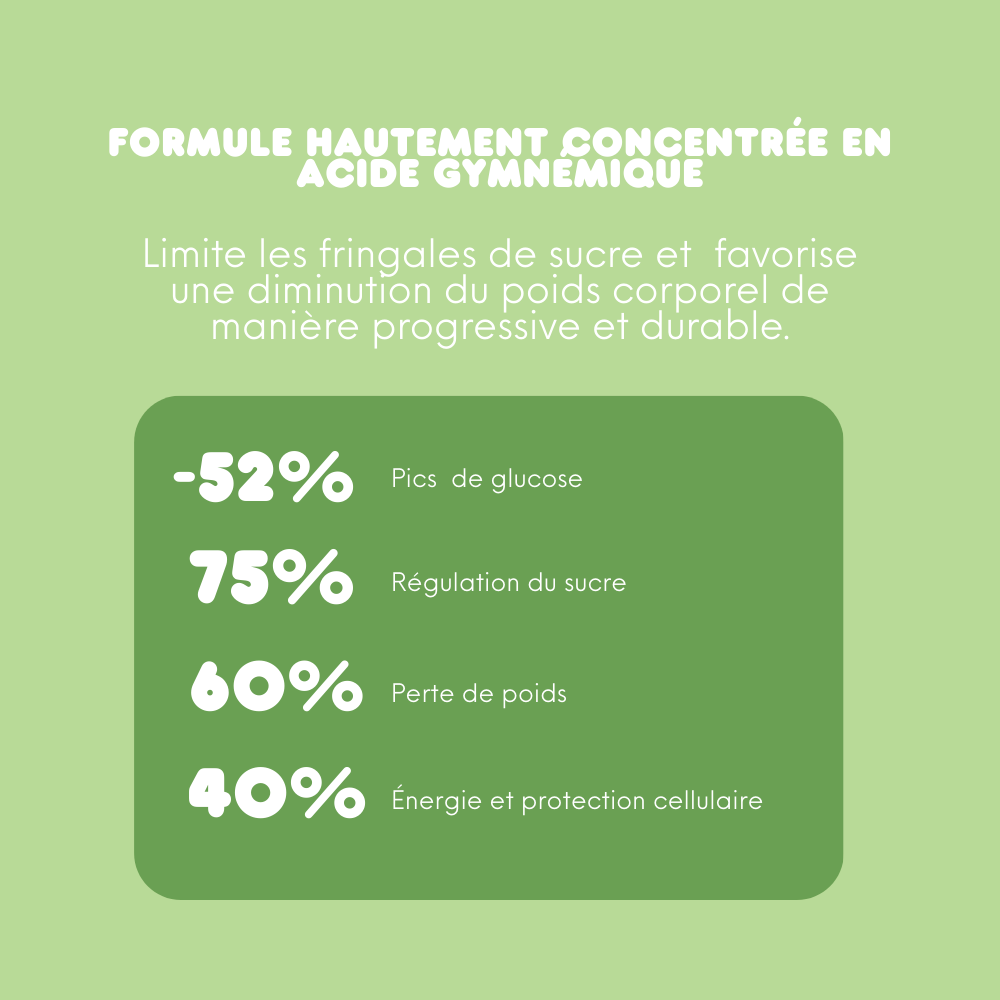 - L'importance du gymnéma : Le gymnema, également connu sous le nom de "destroyer de sucre", est une plante indienne utilisée en médecine traditionnelle pour réguler le taux de sucre dans le sang et supprimer l'appétit. Il est souvent utilisé comme complément alimentaire pour aider à contrôler le diabète de type 2 et à réduire les fringales, ce qui peut favoriser la perte de poids.