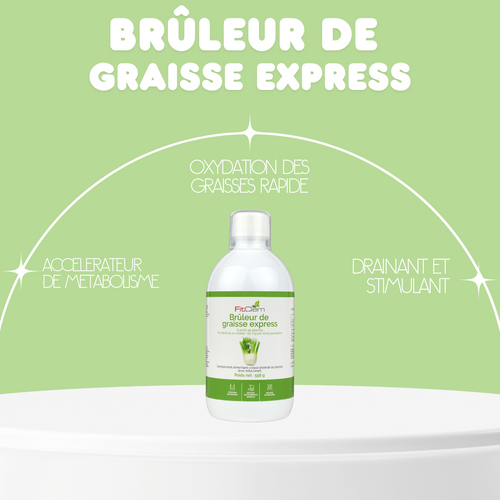 Brûleur de Graisse Express est une boisson hautement concentrée en caféine et enrichie de six actifs végétaux, dont le thé vert et le guarana, qui favorisent une dégradation rapide des graisses.
