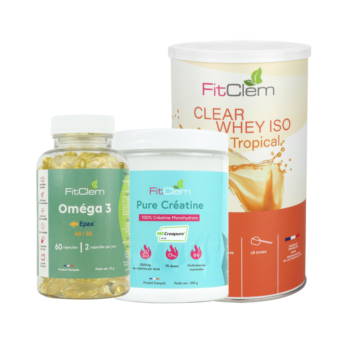 La Cure Recharge Musculaire FitClem associe Clear Whey Iso, Créatine Creapure® et Oméga-3 pour une récupération et une performance optimales.