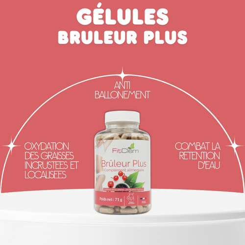 Brûleur Plus est une formule naturelle et complète qui cible à la fois la combustion des graisses et la rétention d’eau.