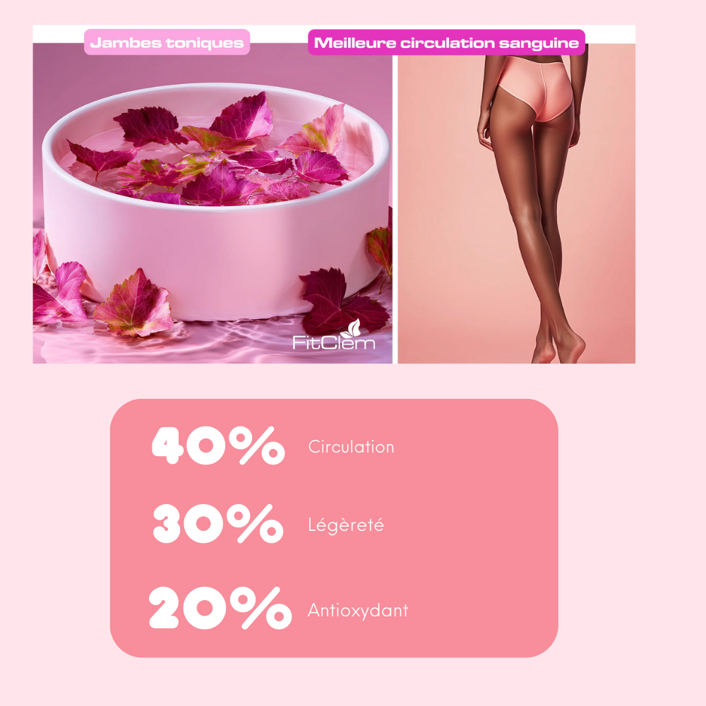 - Sa formule associe poudre de feuille de vigne rouge, reconnue pour ses propriétés veinotoniques, et extrait de pépin de raisin riche en polyphénols antioxydants, qui protègent les cellules du stress oxydatif.